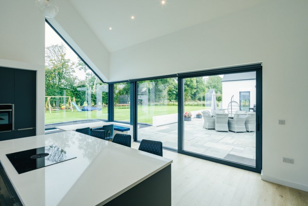 - Materials: Opt for uPVC with wood-like textures such as Winchester or Golden Oak for a warm aesthetic, or go for aluminum with brushed or powder-coated finishes