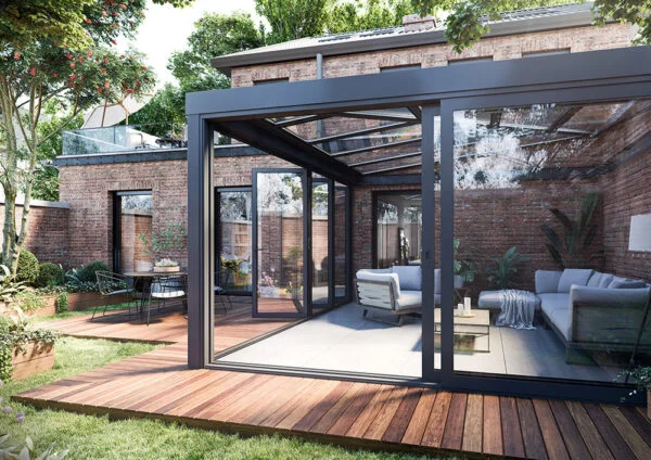 Up to 9 operable sashes offer a wide, fold-away opening that blurs indoor-outdoor boundaries.