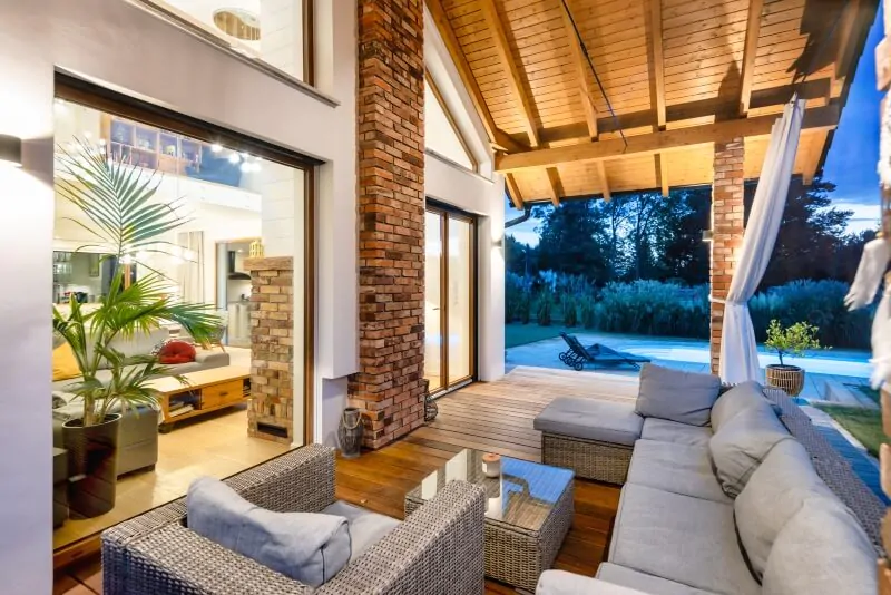 - Indoor-outdoor integration through oversized doors and strategically placed windows.